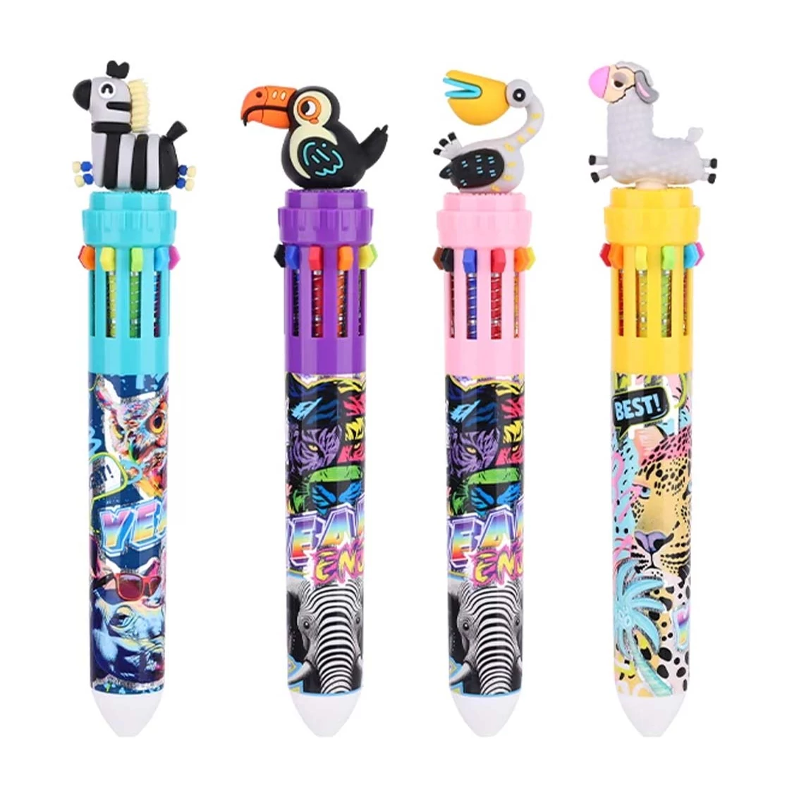 Ez a Safari kaland 10 színű golyóstoll igazi vidám színfoltja lesz az iskolai felszerelésnek, és garantáltan elnyeri a gyerekek tetszését! Minden toll tetején egy cuki állatfigura található – például zebra, tukán, pelikán vagy bárány –, amelyek játékos hangulatot visznek a tanulásba. A toll testét élénk, dzsungel mintás grafikák díszítik, így már a ránézés is inspiráló lehet.