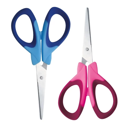 Ez a hegyes iskolai olló mindennapi használatra tervezett rozsdamentes acéléllel, kék vagy rózsaszín puha rugalmas markolattal bír. Az olló 14 cm-es, így kényelmesen elfér majd a technikacsomagban és az iskolatáskában. Az ollók gyakorta használt eszközök a rajz- és technikaórákon, így a gyerekeknek biztosan szükségük lesz majd rá. Az olló nyele kényelmes műanyag, mely a kisebb kezeknek is biztos fogást biztosít. A lekerekített ollóvég biztonságos használatot biztosít akár kisebb gyermekek számára is.