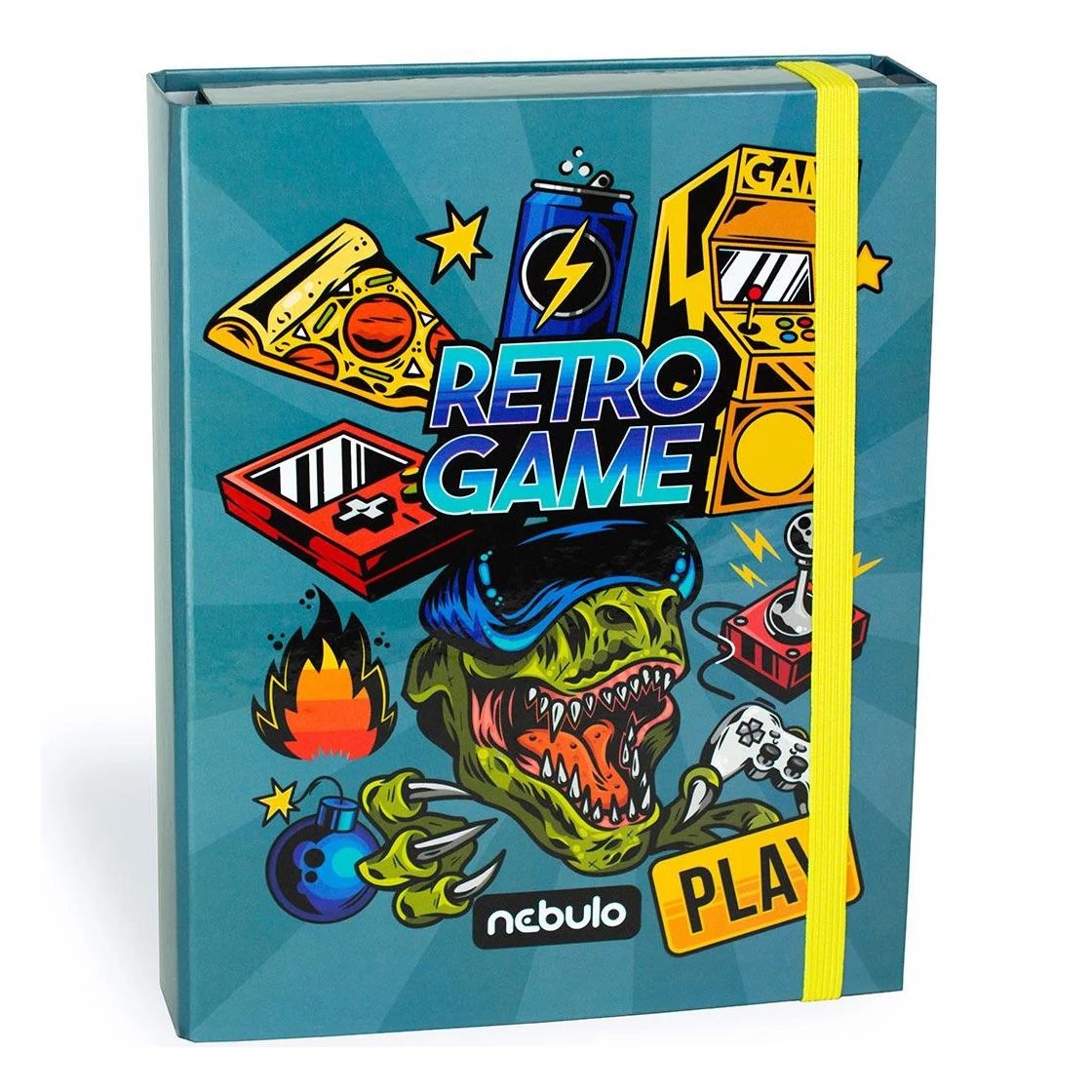 Ha a gyereked igazi játékrajongó, imádja a retró játékokat és a menő grafikákat, akkor ez a Nebulo Retro Gamer füzetbox tökéletes választás lesz számára! A/5-ös méretű kialakítása ideális a kisebb füzetek, jegyzetek, rajzlapok tárolására, miközben a borítón megjelenő vibráló színek és klasszikus gamer ikonok – mint a joystick, pizzaszelet, arcade gép, energiatöltő ital vagy tűzgolyó – garantáltan játékos hangulatot varázsolnak az iskolai mindennapokba.