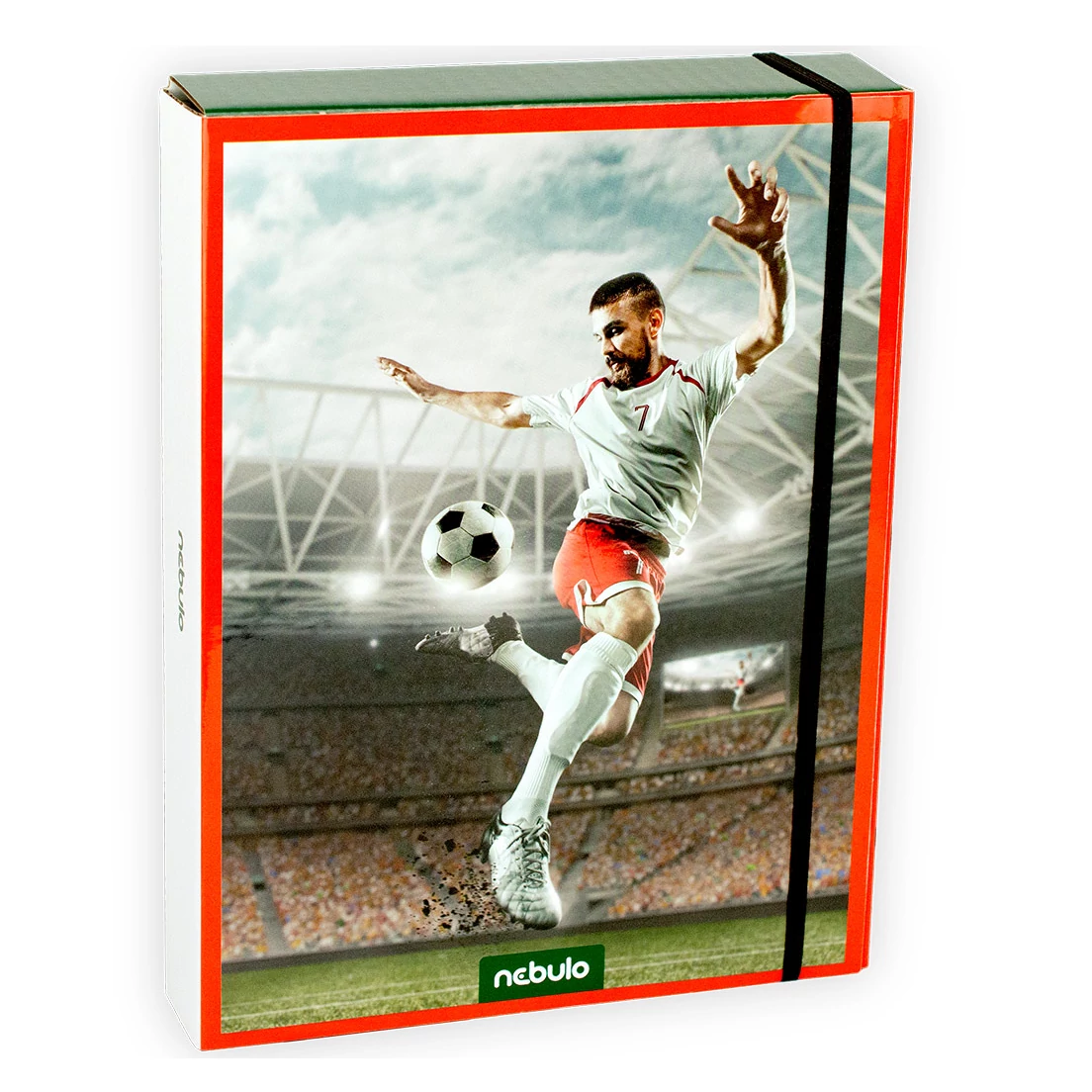 Ez a Nebulo A/5-ös méretű füzetbox minden kis focirajongónak kötelező darab, aki nemcsak a pályán, de a tanulásban is szeretne eredményes lenni! A borítón egy lendületes, akcióban lévő futballista látható, épp a labda felé repülve – olyan látvány, ami azonnal megdobogtatja a sportos gyerekek szívét. A háttérben pedig egy modern stadion nyüzsgő hangulata hozza el a meccs izgalmát az iskolai hétköznapokba.