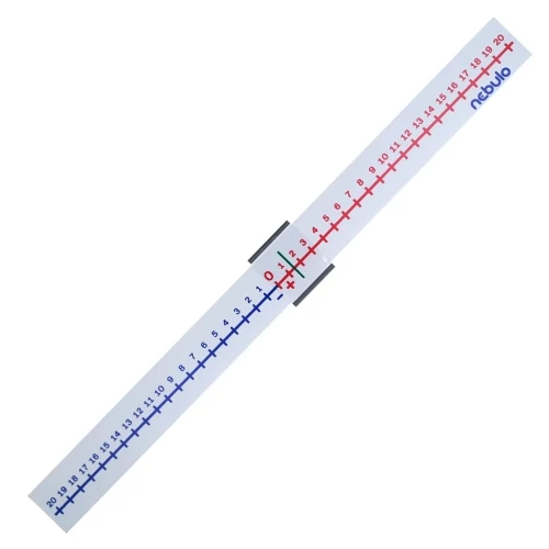 A számegyeneseket gyakran használják a gyerekek az iskolában, kiváltképp alsóbb osztályokban, miközben számolni tanulnak. A Nebulo műanyag számegyenese remek választás az órai munkákhoz, ugyanis kialakítása miatt strapabíró és könnyedén használható. A számegyenes egy pozitív és egy negatív skálára van osztva, melyeken nullától húszig pluszban és mínuszban vannak számok. A számegyenes egy mozgatható áttetsző jelzőt is tartalmaz, melyen zöld vonal található. A számegyenes mérete 34x3cm, így a táskában kényelmesen elfér majd, akár egy nagyobb füzet lapjai közt is.
