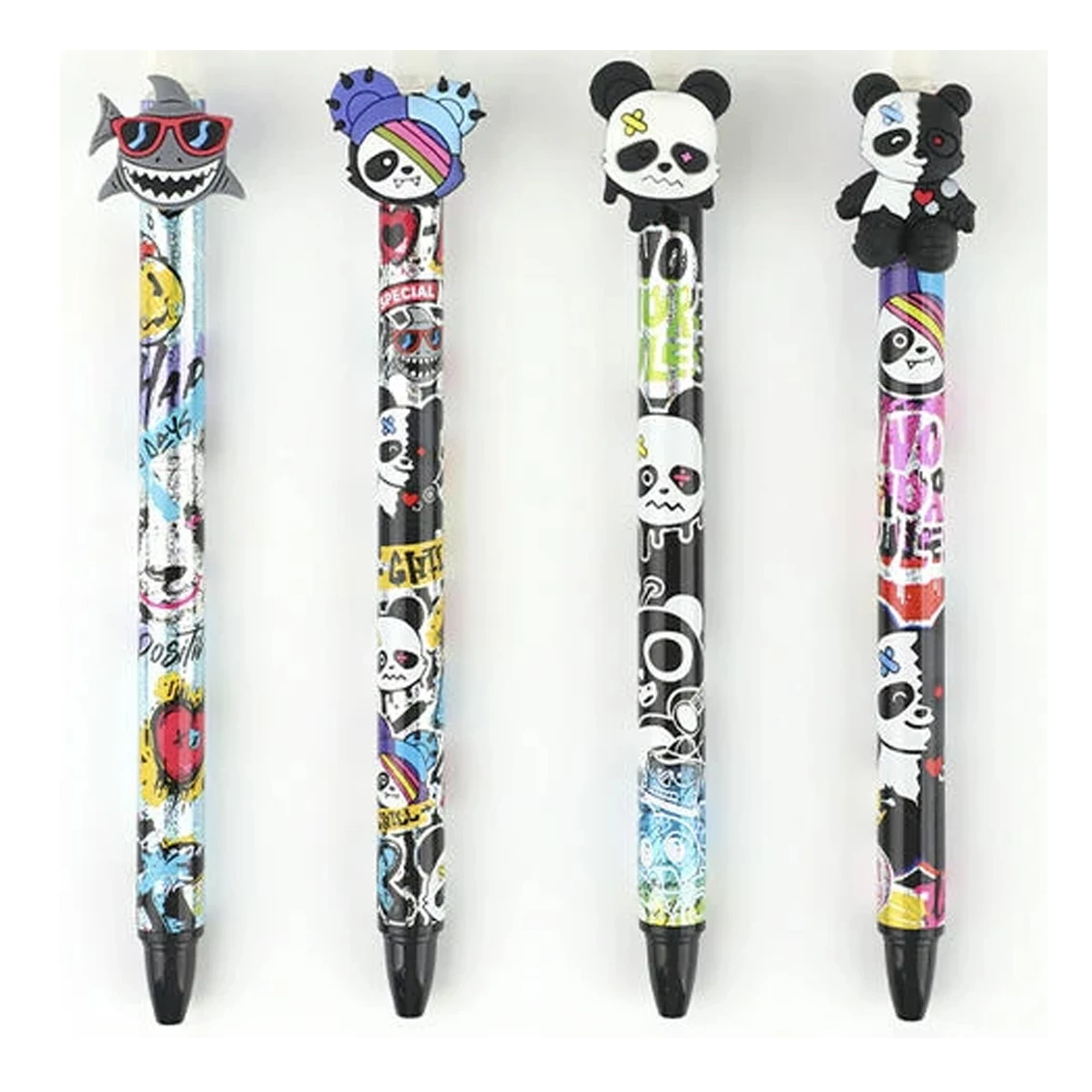 A nyomógombos kivitelnek köszönhetően a toll praktikus és kényelmes: nincs kupak, amit el lehet veszíteni, csak egy kattintás, és máris indulhat az írás. A zselés tinta szépen és egyenletesen fog, így nem maszatol, és a betűk jól olvashatók maradnak. A minták a tolltesten igazán trendik: graffitis, pop-art és vagány panda karakterek díszítik, ami kifejezetten vonzó lehet a stílusos, karakteres gyerekek számára.
