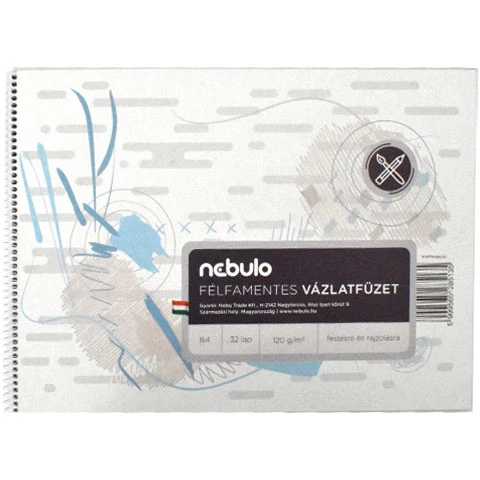 Ez a Nebulo vázlatfüzet minden művész és kreatív beállítottságú ember táskájában elfér, hiszen a segítségével bármikor is érkezik az ihlet, máris elő lehet kapni a füzetet és festhetünk vagy rajzolhatunk bele. A Nebulo B4-as méretű vázlatfüzete harminckét darab, százhúsz grammos, félfamentes lapot tartalmaz, aminek egy vastag, hatszáz grammos karton hátlap ad kellő merevséget, így rajzolás közben remekül lehet használni asztalon épp úgy mint a combunkra fektetve.