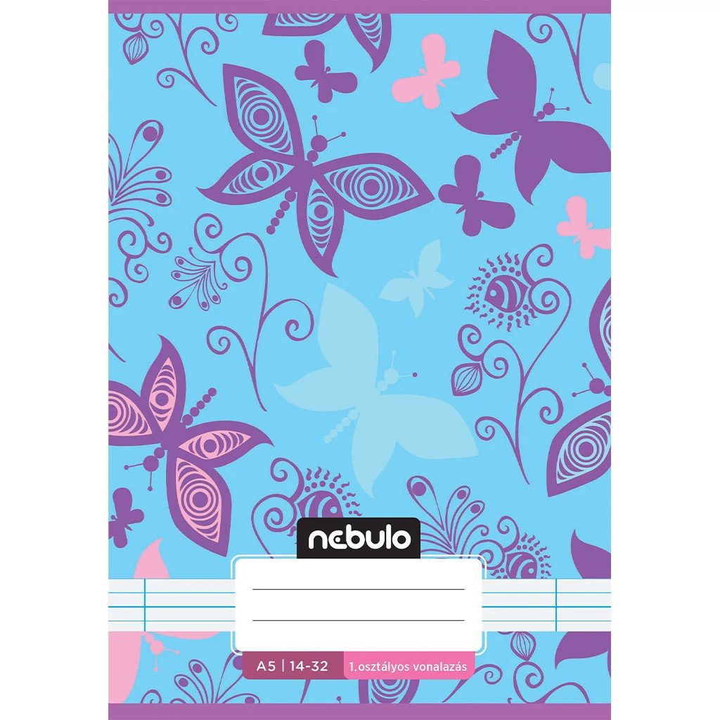 Nebulo: Tűzött 1. osztályos vonalas füzet A5-ös 14-32 Cuki mintás - Pillangós
