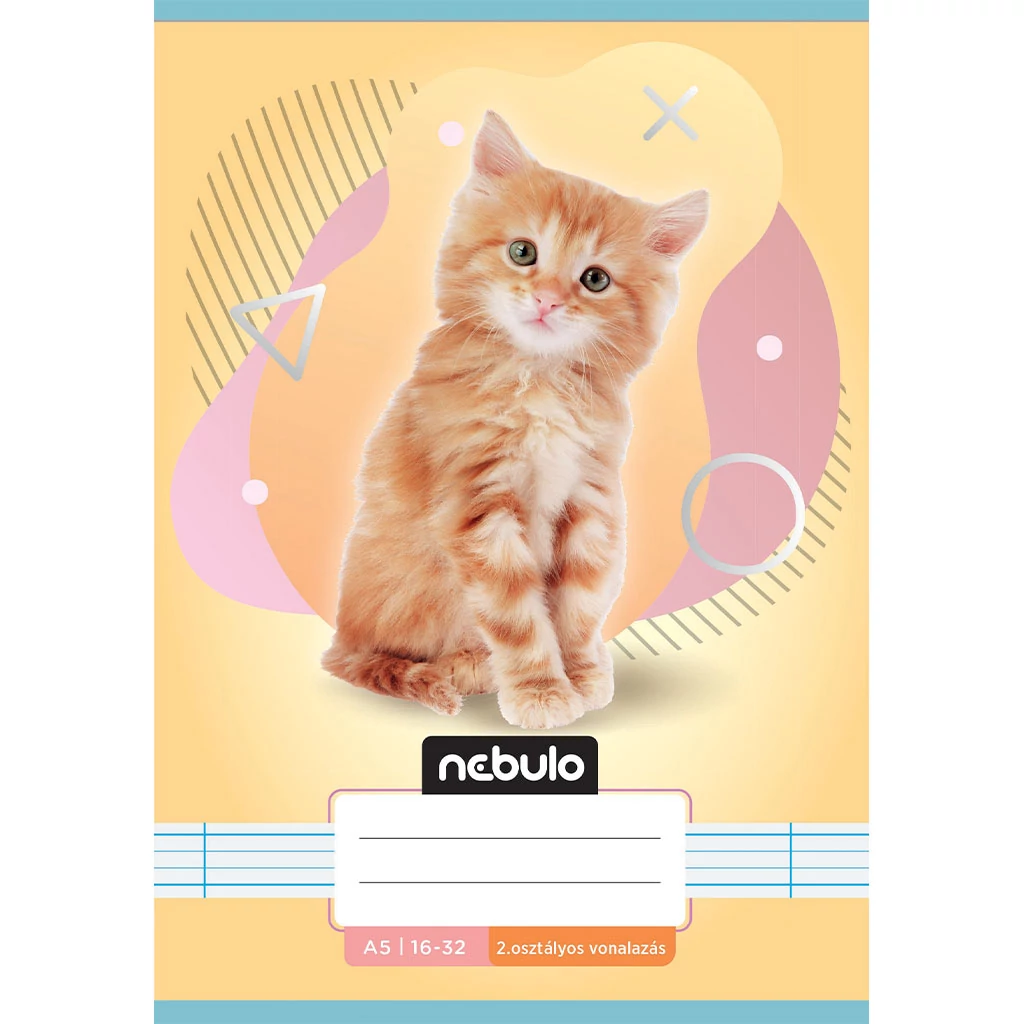 Nebulo: Tűzött 2. osztályos vonalas füzet A5-ös 16-32 Állatos - Cicás