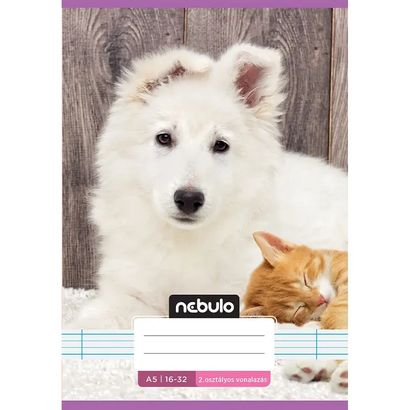 Nebulo: Tűzött 2. osztályos vonalas füzet A5-ös 16-32 Cuki mintás - Barátságos háziállatok