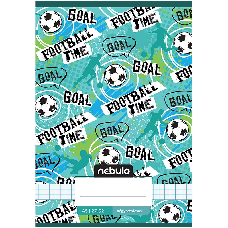 Nebulo: Tűzött football time feliratos kockás füzet 27-32 A/5