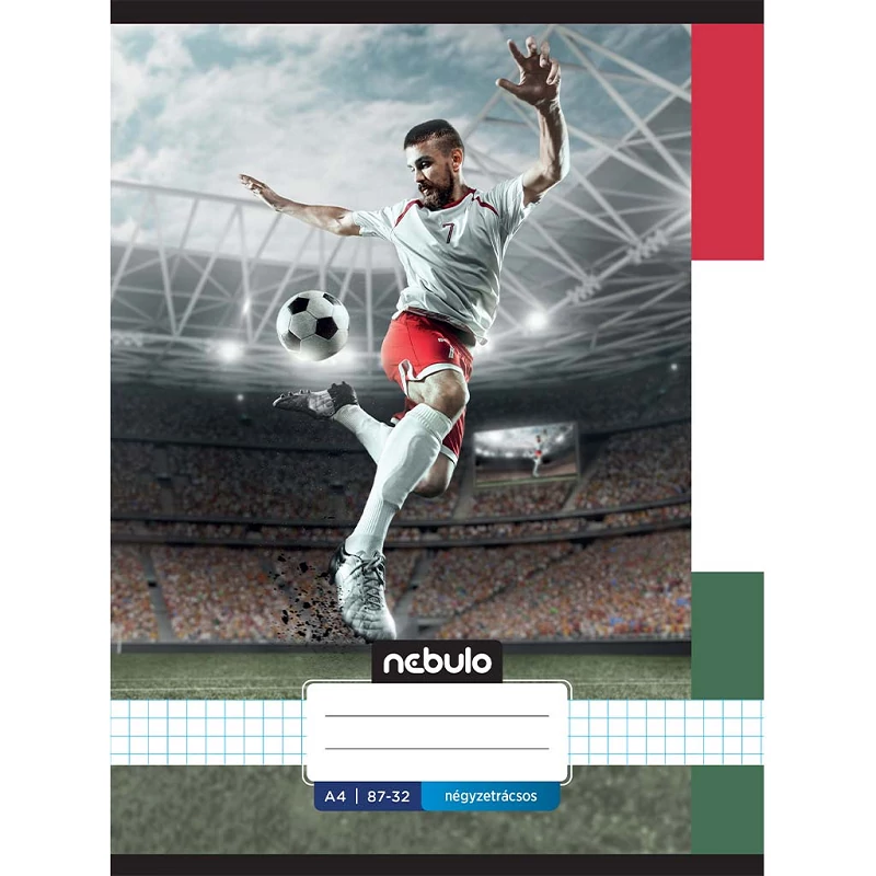 Nebulo: Tűzött kockás foci HUN mintás füzet 87-32 A/4