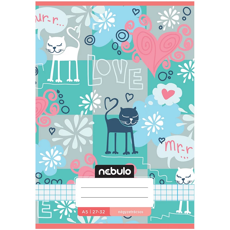 Nebulo: Tűzött mirr-murr cuki cica mintás kockás füzet 27-32 A/5