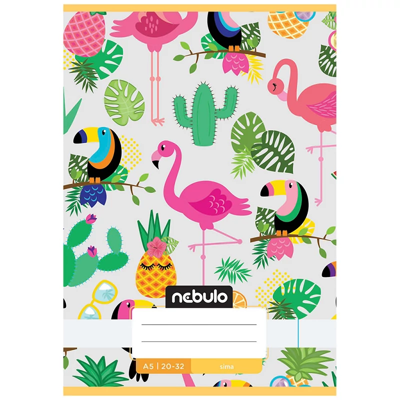 A Nebulo tukán mintás tűzött sima füzet egy igazi színkavalkád, amely garantáltan jókedvre deríti a gyerekeket már első ránézésre is. A vidám, trópusi hangulatot idéző borítón színes tukánok, flamingók, kaktuszok és gyümölcsök (ananász, citrom, narancs) jelennek meg játékos, rajzfilmszerű stílusban. Ez a dizájn nemcsak figyelemfelkeltő, hanem inspiráló is, így a gyerekek örömmel nyúlnak érte akár az iskolában, akár otthoni kreatív időtöltés során.