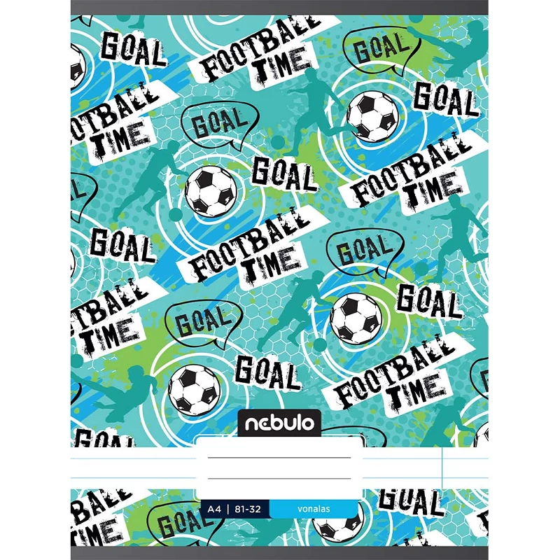 Nebulo: Tűzött vonalas football time feliratos füzet 81-32 A/4