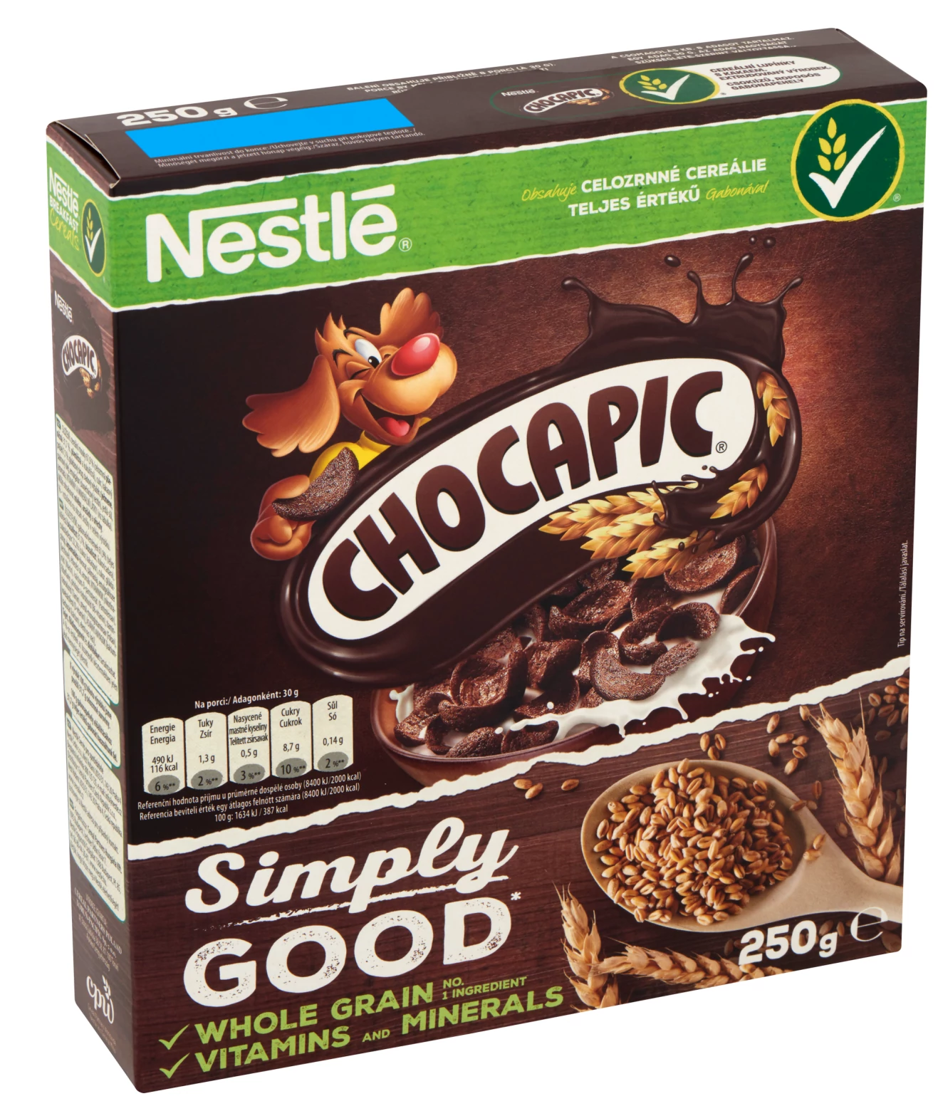 - Teljes kiőrlésű búzaliszt 35%, Csokoládépor 22,5% (cukor, kakaópor 7,2%), Búzaliszt 17%, Kukoricadara 15,2%, Glükózszirup, Cukor, Árpamaláta-kivonat, Napraforgóés/vagy pálmaolajat tartalmaz, Kalcium-karbonát (kalcium), Emulgeálószer (lecitinek), Étkezési só, Természetes aromák, Elemi vas (vas), Nikotinamid (Niacin), Kalcium-D-pantotenát (Pantoténsav), Riboflavin (B2-vitamin), Piridoxin-hidroklorid (B6-vitamin), Tiamin-hidroklorid (B1-vitamin), Pteroil- monoglutaminsav (Folsav), Kolekalciferol (D-vitamin),