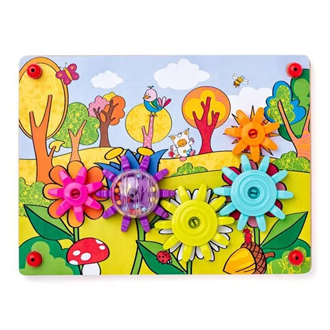 A mágikus fogaskerekű puzzle a Woodyland egyik kiváló minőségű terméke. A többféle fogaskerekeknek köszönhetően a gyermekek megtanulnak különbséget tenni a színek és a méretek között. Hat különböző téma közül lehet választani. Mindegyiken egy megadott számú lyuk van, ahova a fogaskerekeket el kell helyezni úgy hogy pontosan egymáshoz illeszkedjenek. Az egyik kerék megpörgetésével, az összes többi is szimultán pörögni fog.