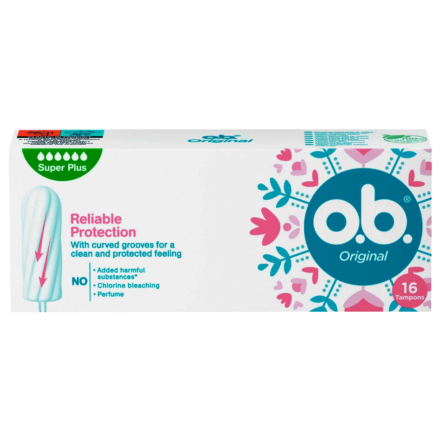Megbízható védelem csavart bordákkal:Hatékonyan vezeti a folyadékot a tampon belsejébe.Az o.b. super plus csomagolásán látható hat csepp arról árulkodik, hogy ezt elsősorban olyan nők számára fejlesztették ki, akiknek igen erős a vérzésük, vagy akik szülés után erősebb vérzést tapasztalnak.Figyelem:A mellékelt tamponhasználatról szóló tájékoztató fontos információkat tartalmaz a menstruációs TSS-ről, mely egy ritka, de súlyos betegség. Kérjük, olvassa el és őrizze meg egészsége és higiéniája érdekében.