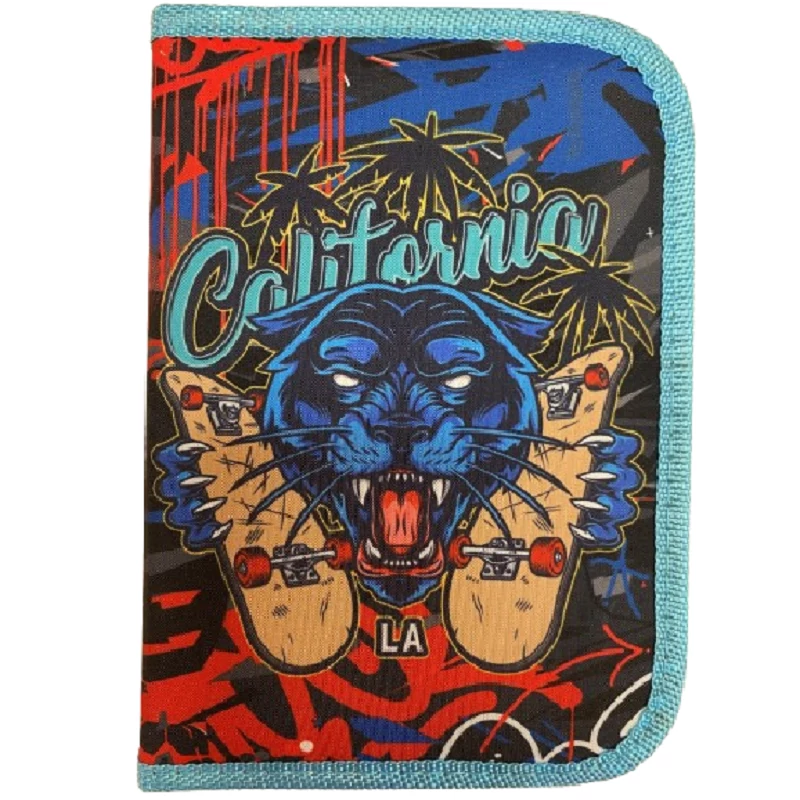 Stílusos, kétrészes (2 klapnis) Octopus tolltartó párducos mintával, fekete alapon élénk motívumokkal, töltött kivitelben, ideális iskolásoknak, tiniknek tollak, ceruzák, radírok és egyéb írószerek rendszerezett tárolására.