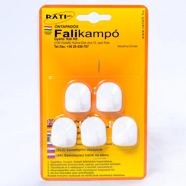 Öntapadó műanyag falikampó 5db 3196