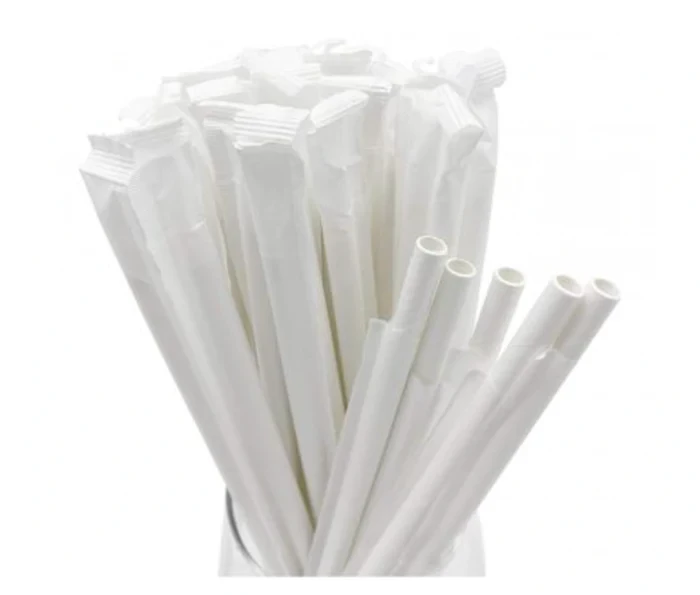 Műanyag szívószál helyettesítőjeként alkalmazható környezetkímélő, lebomló papír szívószál. Egyesével papírban külön csomagolt.