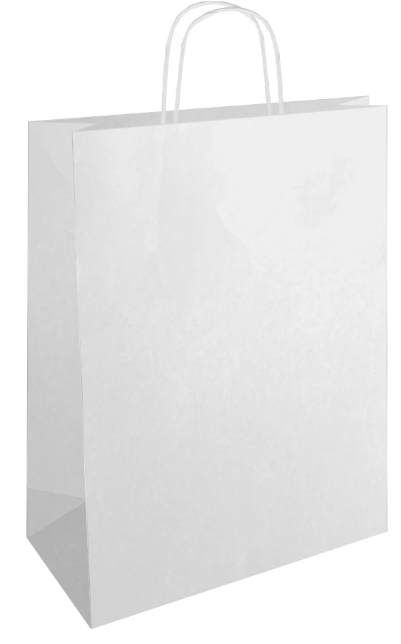 A4 méretű, álló formátumú, fehér színű sodrottfüles papírtáska. Albumok, könyvek, iratok, vagy akár ruházati termékek ideális papírtáskája.