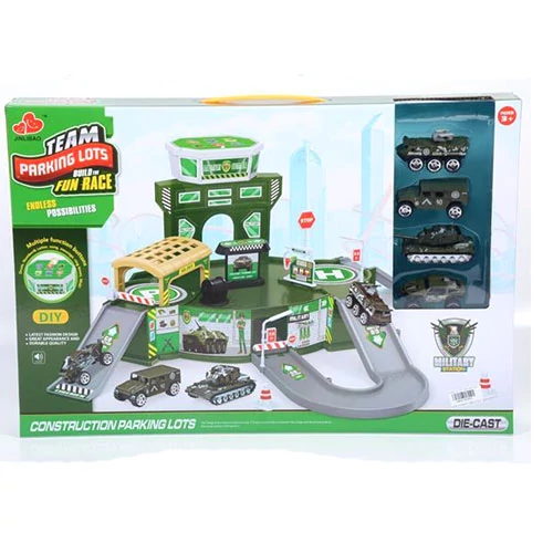 A parkolóházak nagyon összetett építmények, melyek sok érdekességet tartanak magukban. Most egy zöld színű parkolóházat szerezhetsz be gyermeked számára, mely tökéletes választás lehet, hiszen ez egy katonai építmény, melyhez különböző katonai járművek is tartoznak, így ebbe a világba is betekintést nyerhet gyerkőcöd. A szett könnyen összeilleszthető, a terepjárókkal és tankkal pedig könnyen körbejárható, kisfiad pedig jókat tud mókázni majd általa. Szerezd be, és engedj betekintést gyermekednek egy izgalmas világba.