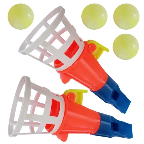 Páros mini tölcséres kilövő-elkapójáték síppal és 4db labdával több változatban