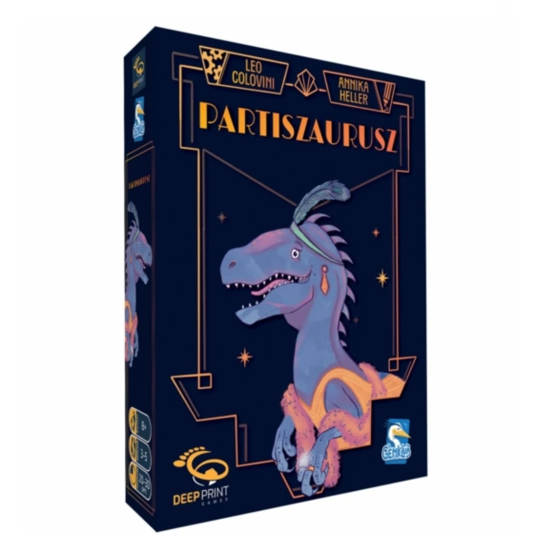A kihalás nem mentség arra, hogy ne bulizz még egy utolsót! A Partiszaurusz egy könnyed, mégis taktikus licitálós kártyajáték, ahol a játékosok célja, hogy a legjobb dinoszaurusz vendéglistát állítsák össze. De ne feledd: a dinók válogatósak – csak a megfelelő finomságokkal, italokkal vagy éppen drágakövekkel lehet őket elcsábítani a bulidra. A játék során minden döntés számít: emelj a tétet vagy passzolj okosan, és csapj le a legértékesebb kártyákra a megfelelő pillanatban.