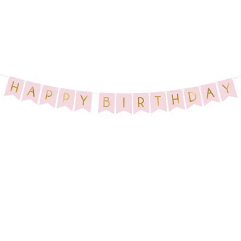 Party füzér "Happy birthday" felírattal rózsaszín 175cm