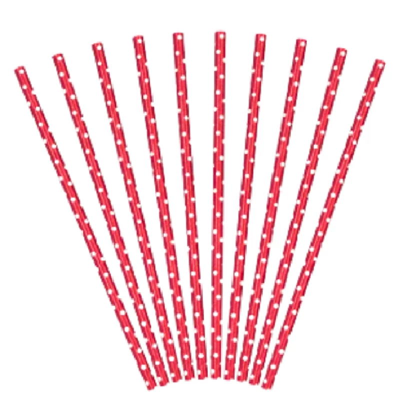 Papír szívószál piros, fehér pöttyökkel kb. 20 cm. Egy csomagban 10 db van. A termék megfelel az Európai Unió előírásainak.