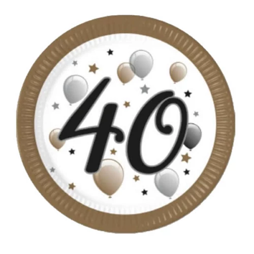 Party papírtányér 8db 23cm arany-ezüst 40. szülinapra