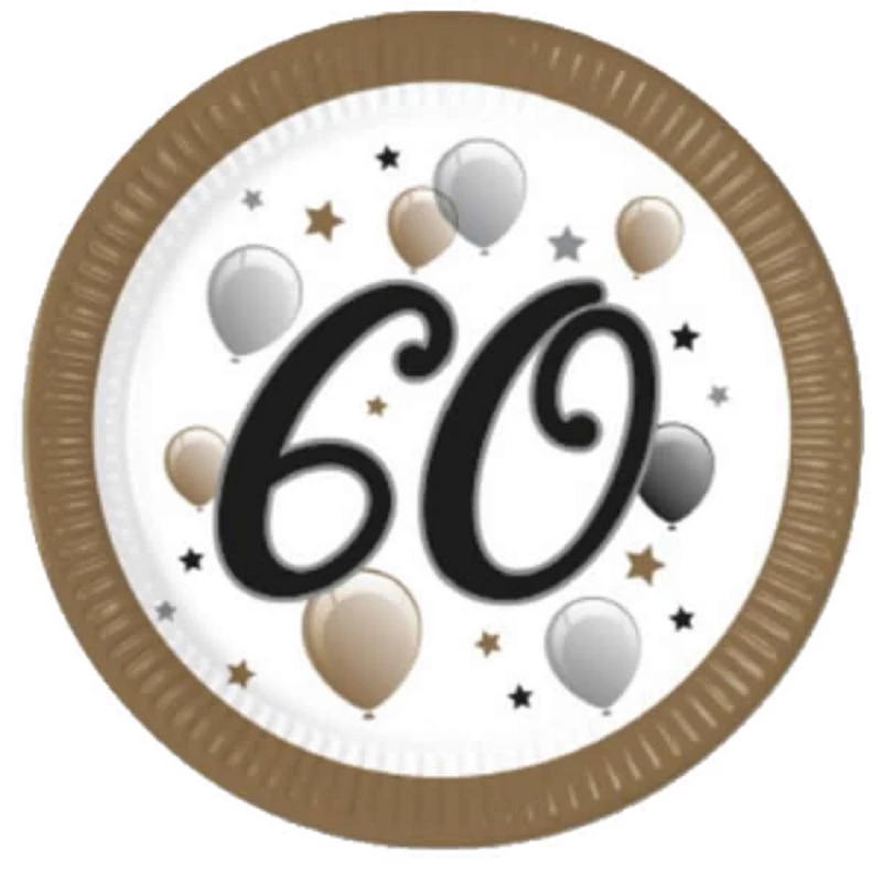 Party papírtányér 8db 23cm arany-ezüst 60. szülinapra