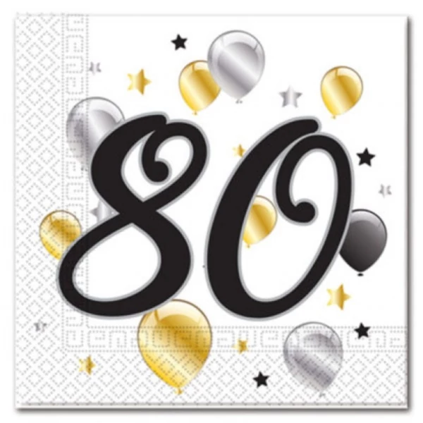Party szalvéta 80. évszámos 20db-os kiszerelésben 33x33cm