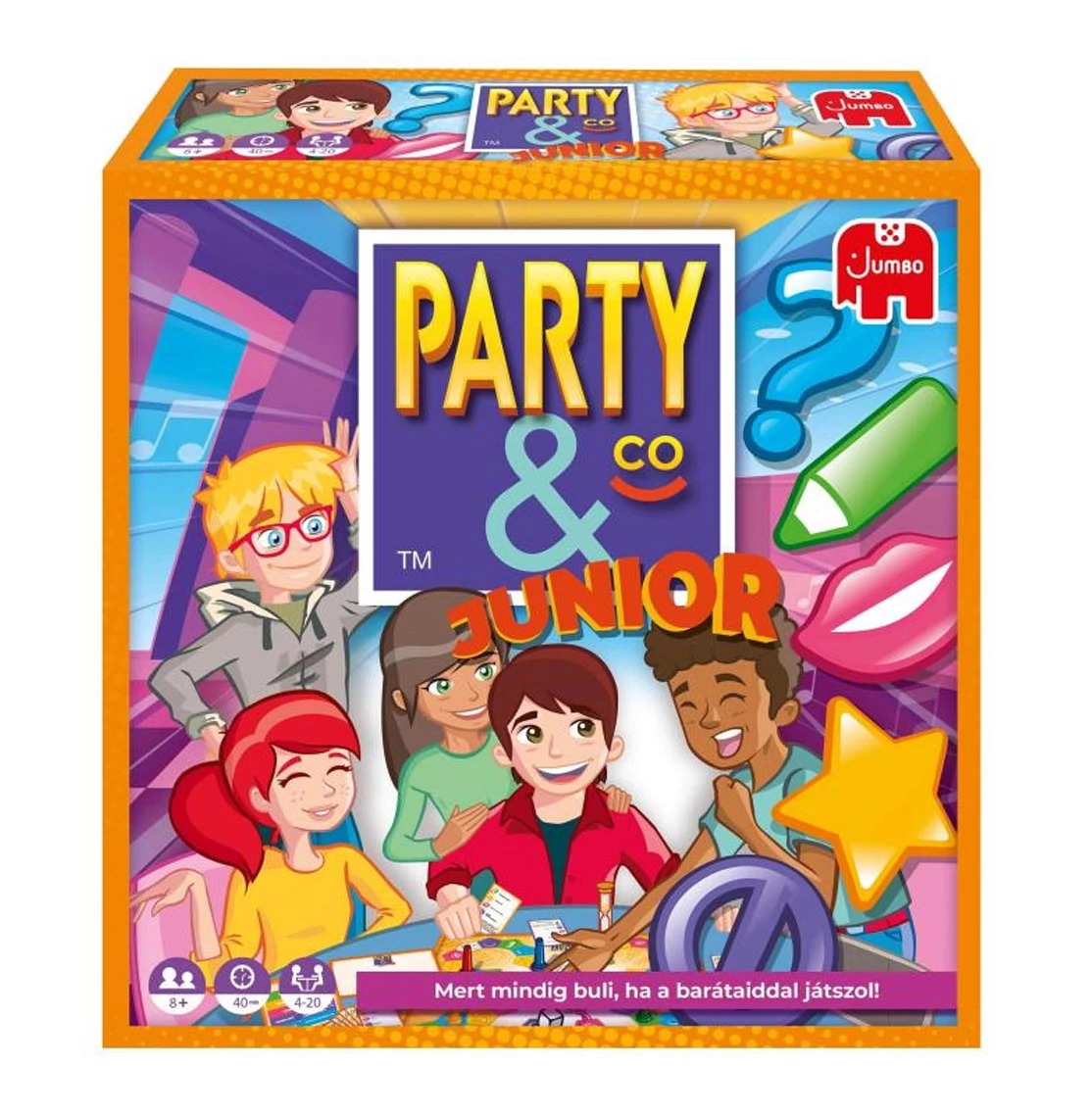 "Party & Co.™ Junior" társasjáték a Jumbo-tól egy igazán színes és szórakoztató játék a fiatalabb generáció számára! A doboz borítóján vidám, fiatal karakterek láthatók, akik garantáltan elvarázsolják a gyerekeket. Ez a változat kifejezetten a 8 év feletti korosztálynak készült, és 4-20 játékos számára nyújt izgalmas kikapcsolódást.