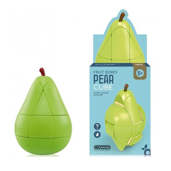 Ez bizony nem csak egy egyszerű körte, hanem különleges ügyességi játék, ami garantáltan felkelti a gyerekek érdeklődését, és biztos, hogy jó ideig ellesznek azzal, hogy az elfordítható részeket csavargatják. A játék alapötletét alighanem a Rubik kocka adta, azonban itt nem egy kocka oldalait kell azonos színűre kirakni, hanem egy gyümölcs formát van lehetőség elfordítani a bevágások mentén. Az elfordítások során a körte felszíne teljesen szétesik, de aki elég ügyes, az vissza tudja állítani az eredeti formáját. A játék remekül fejleszti a gyerekek ügyességét és a logikus gondolkodást is serkenti.