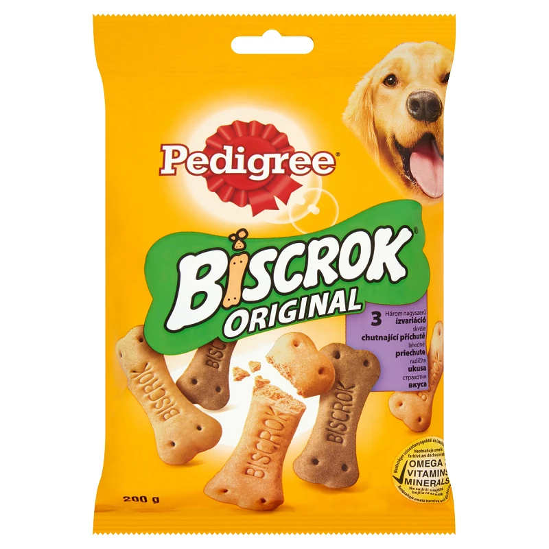 Kezelje felnőtt kutyákat Törzsi Biscrok válogatott csontokat. PEDIGREE A keksz-válogatott ropogós, pitted kekszek tökéletesen kedvtelik háziállatukat. Egy csomag PEDIGREE Biscrok a kutya három kedvenc íze: csirke, marha és bárány. PEDIGREE A Biscrok kalciumot tartalmaz, amely támogatja a csontok egészségét, a természetes védelmet nyújtó vitaminokat, és az omega 3-t az állateg aktív életéhez. PEDIGREE Biscrok zárral ellátott csomagolás nyitható és zárható, amikor kényelmes.