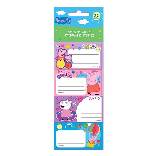 A füzetcímkék nagyon praktikusak és nélkülözhetetlenek főleg az iskolások részére, akik ezeket a füzetekre valamint a könyvekre ragaszthatják fel, majd a nevüket és a megfelelő tantárgyat írhatják ezek felszínére, így megkülönböztethetik ezeket egymástól. A füzetcímkék felületén Peppa malac főszereplővel és ennek barátaival találkozunk, így a mese rajongói biztosan örvendeni fognak ha mesehősük a borítójukat díszítik. A szettben 20 darab füzetcímke kapott helyet különféle változatokban.
