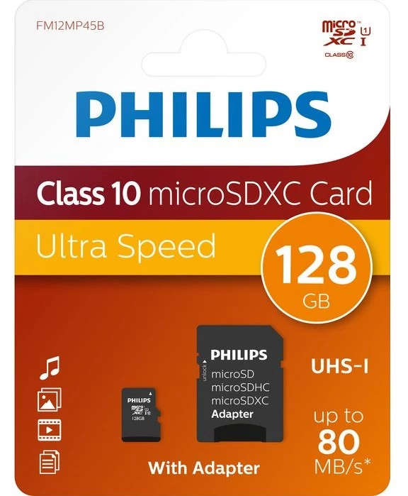 Philips Micro SDXC Memóriakártya128GB Class 10 UHS-I U1 Adapter