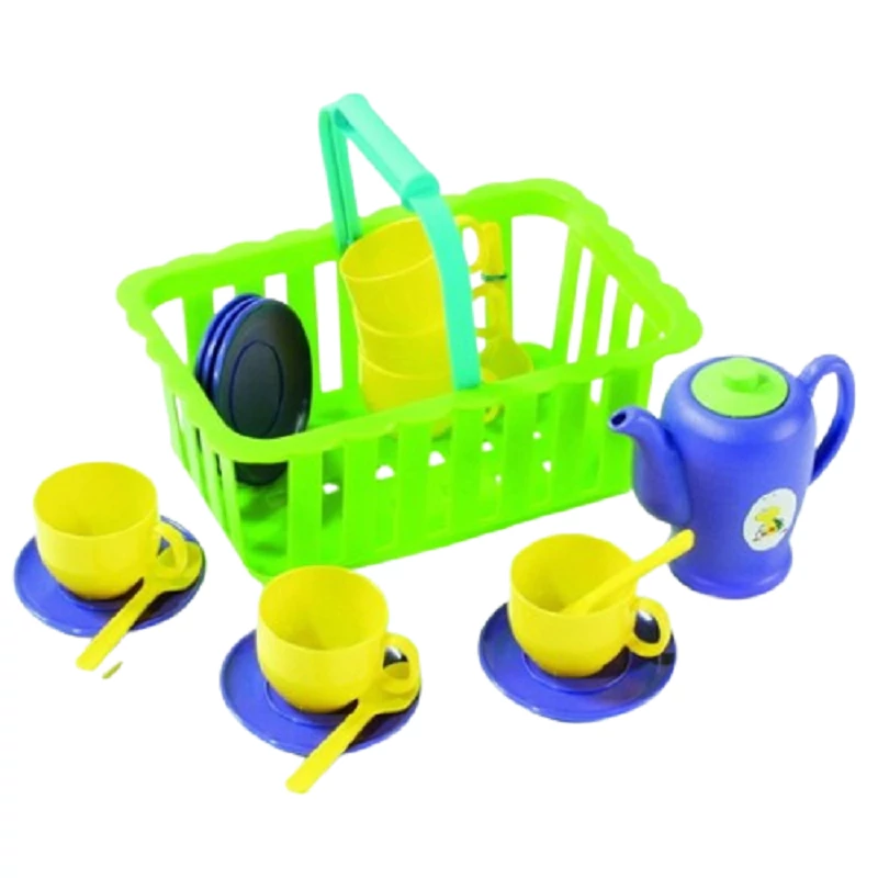 Játszd el álmaid kirándulását! Most ezzel a készlettel saját magad is eljátszhatsz egy kellemes piknikezést a füves réten. Pakold be a legfinomabb élelmiszereket a kosárkába, vagy vidd magaddal a komplett garnitúrát a csészékkel és a kiöntővel. A készlet alkalmas rá hogy meghívd a barátnőidet is így akár már hárman is tudtok egyszerre játszani. Vigyázzatok, mert a készlet forró italok tárolására, vagy mikrohullámú sütőben való melegítésre nem alkalmas!
