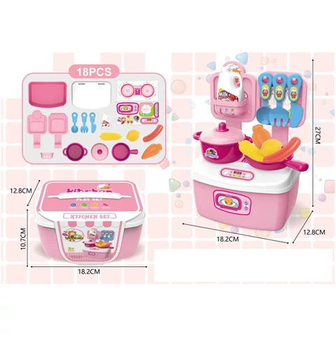 Pink hordozható 18db-os játékkonyha szett