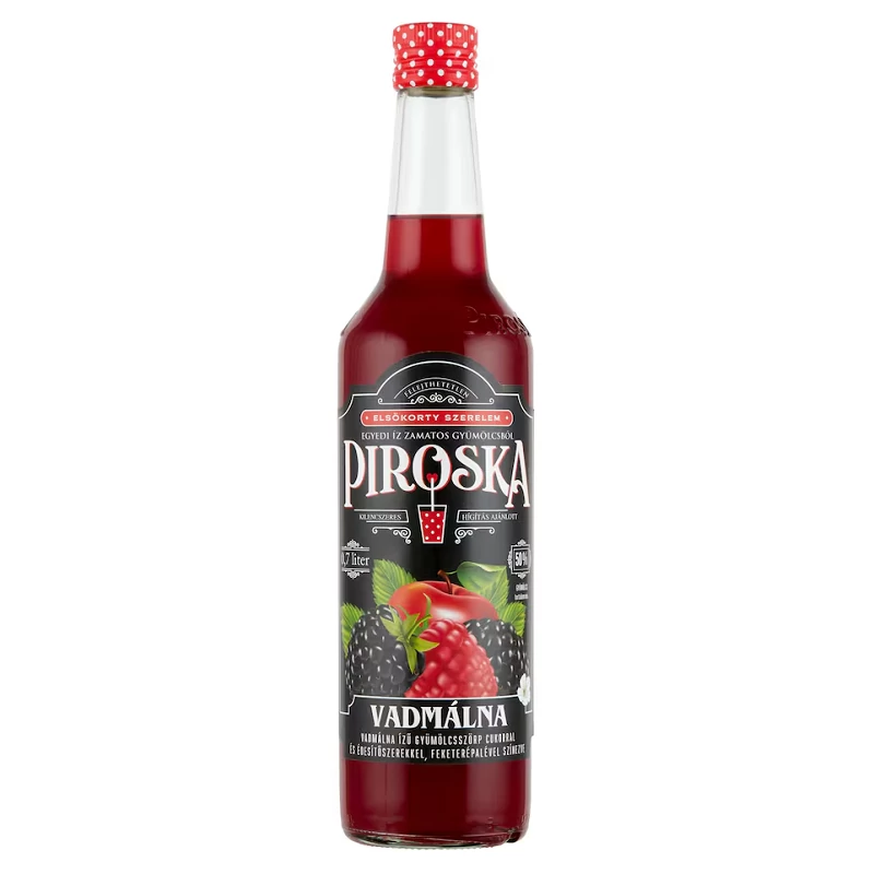 Piroska vadmálna ízű gyümölcsszörp feketerépalével színezve cukorral és édesítőszerrel 0,7 l