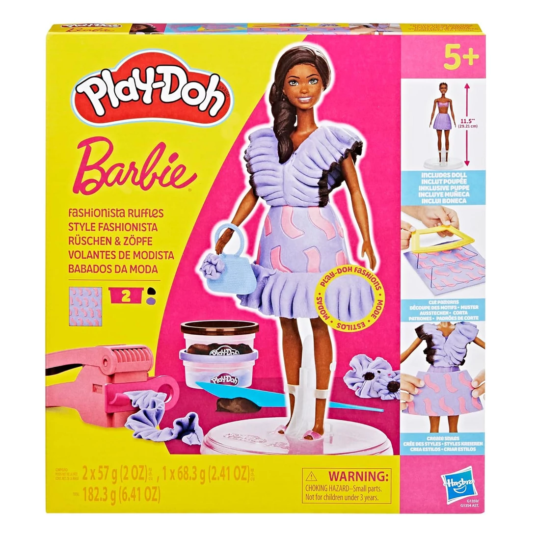 Alkoss egyedi és divatos szetteket a Play-Doh: Barbie Fashionista fodros ruhák gyurmaszett segítségével! Ez a különleges készlet lehetővé teszi, hogy gyermeked Barbie babát igazi kifutóra illő stílusban öltöztesse fel, Play-Doh gyurma segítségével. A csomagban található 29 cm-es eredeti Barbie baba mozgatható végtagokkal és fejjel, így minden alkotott ruhadarab könnyedén feladható rá. A baba az állványra helyezve stabilan áll, miközben a gyerekek megalkotják a legújabb divatkollekciót.