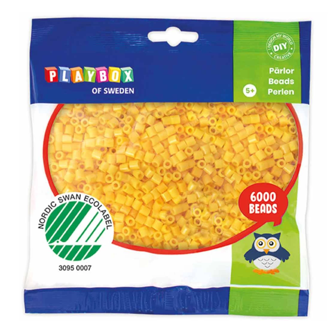 A gyöngyök minőségi, nem mérgező anyagból készülnek, biztonságosak a gyermekek számára, és a Nordic Swan Ecolabel tanúsítvánnyal rendelkeznek, ami biztosítja, hogy a termék környezetbarát módon lett előállítva. A világos sárga szín tökéletesen illik nyári projektekhez vagy bármilyen alkalmazáshoz, ahol a napfényes, vidám hangulatot szeretnéd előidézni.