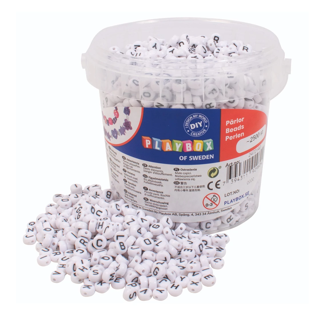 PlayBox: Betűs gyöngy szett vödörben fekete-fehér színben 2500 db-os