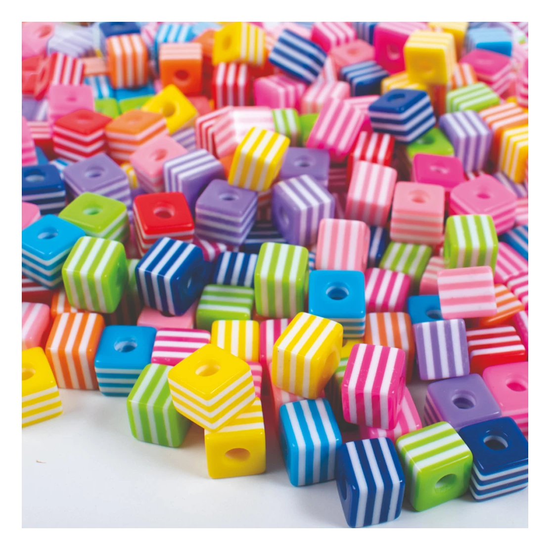 A kocka alakú gyöngyök egy centiméteres méretükkel ideálisak a különböző minták és elrendezések alkotásához. A csíkos mintázat további dimenziót és érdeklődést ad a készített ékszereknek. Képzeld el, hogy milyen egyedi és szemet gyönyörködtető darabokat alkothatsz ezekkel a gyöngyökkel!