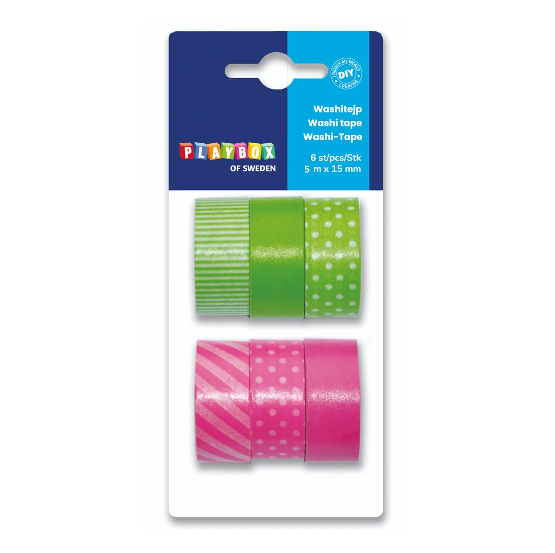 PlayBox: Dekorációs ragasztószalag szett zöld és rózsaszín színben 6 db-os