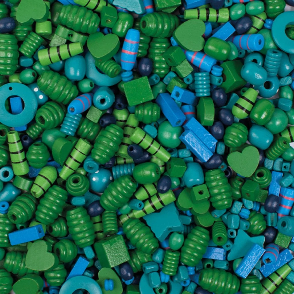 PlayBox: Fa fűzhető gyöngyök kék és zöld színekben vegyesen 250g-os szett