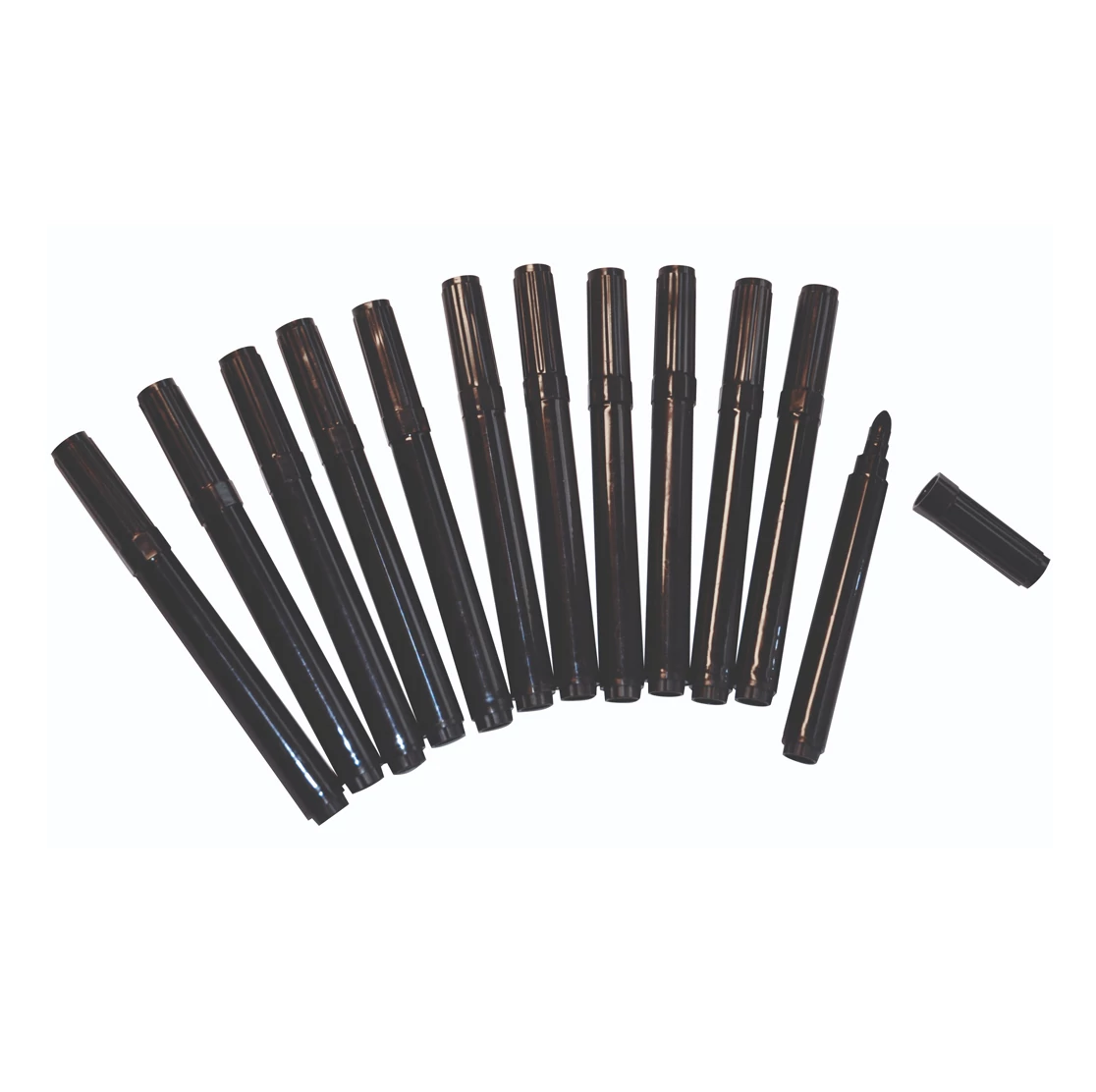 A fekete 12 db-os vastag filctoll szett ideális választás lehet, ha kiemelten vastag vonalakat vagy sötét színű kiemeléseket szeretne alkotni. Minden toll hossza 12,5 cm, és átmérője 1,5 cm, ami vastagabb vonalakat tesz lehetővé, valamint kényelmes fogást biztosít a használat során.