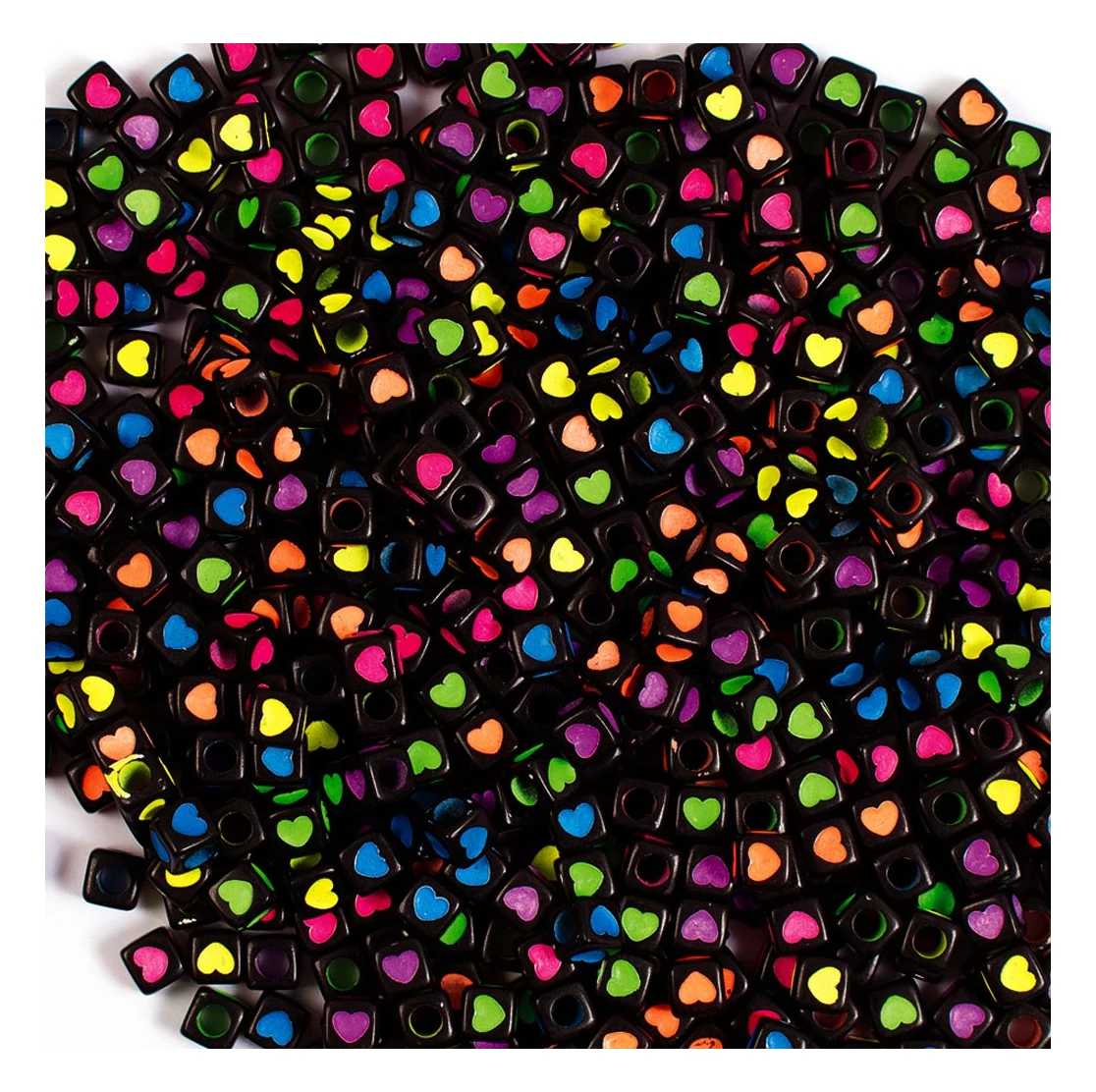 Ez a műanyag fekete gyöngy szett, mely szivecskés mintával díszített, kiváló választás lehet kézműves projektekhez, karkötők és nyakláncok készítéséhez. A szivecskék neon színekben tündökölnek, így feltűnő és vidám kiegészítőket alkothatsz velük.