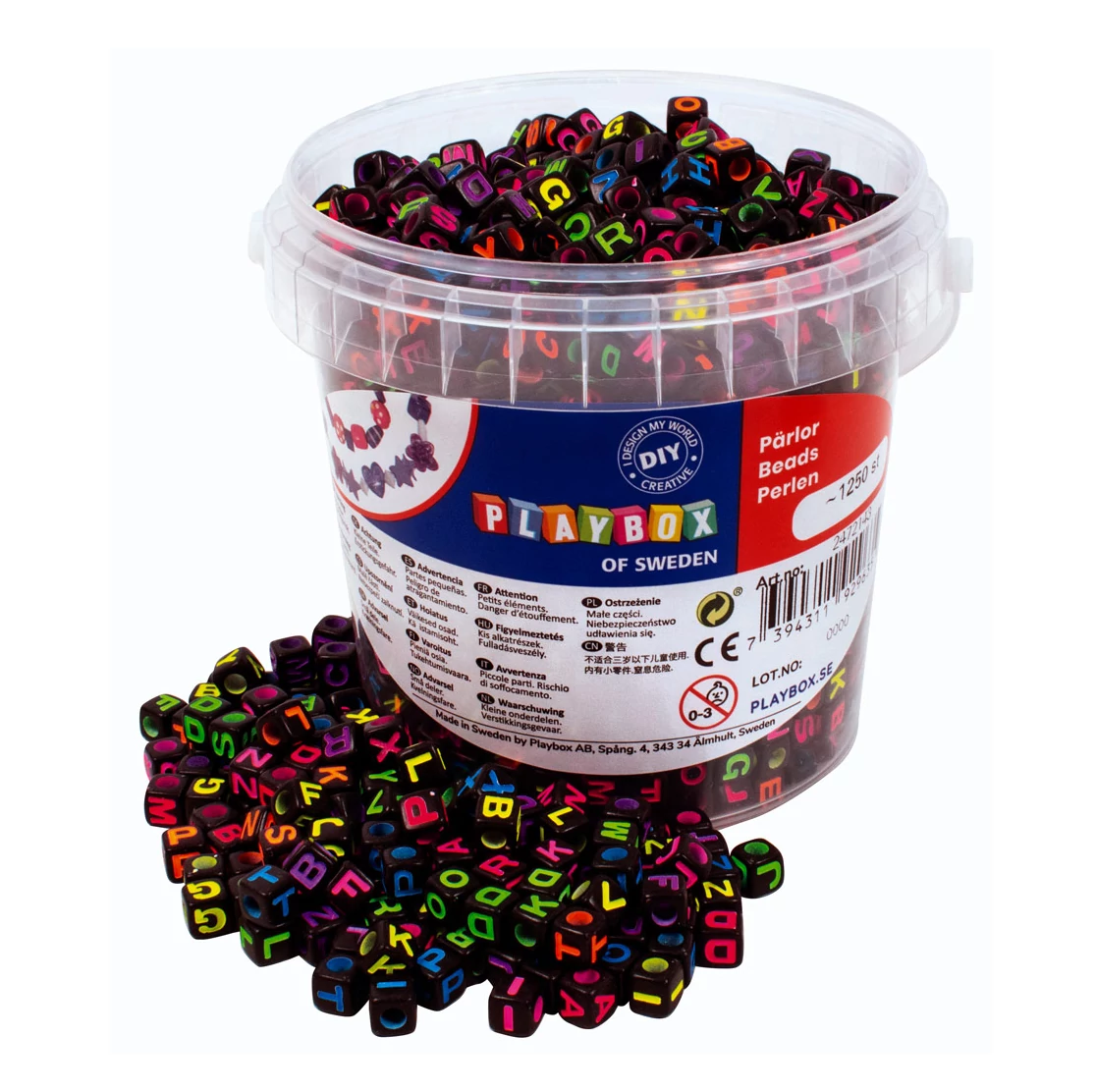 PlayBox: Fekete neon betűs gyöngy szett 1250 db-os