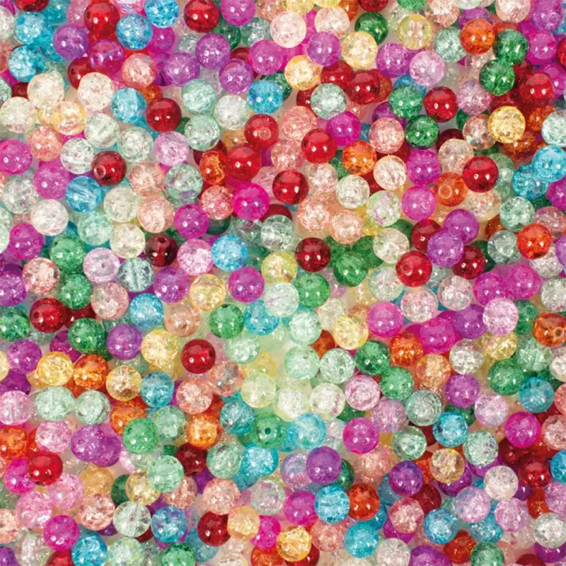 Ez a gyönyörű, repedezett hatású üveggyöngy készlet tökéletes választás ékszerkészítéshez, kreatív alkotásokhoz és dekorációs projektekhez. A csomag körülbelül 250 darab, 8 mm átmérőjű, színes üveggyöngyöt tartalmaz, amelyek egyedi, csillogó megjelenésükkel különleges fényt adnak minden alkotásnak.