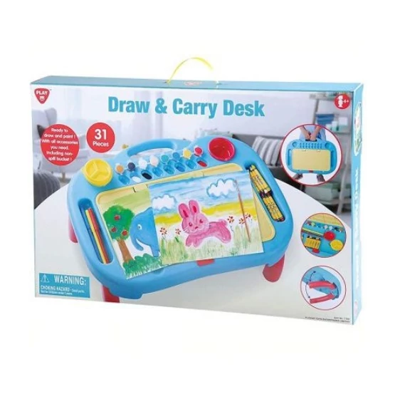 A művészetek, különösen a rajzolást és festést kedvelő gyermekek számára remek választás ez a hordozható szett, melyben minden szükséges kiegészítő megtalálható a szórakoztató alkotáshoz. A praktikus, kihajtható lábakkal rendelkező táblán találnak a kicsik festéket, filctollakat és zsírkrétákat is, természetesen több különböző színben. A rajzlapok a tábla közepére helyezhetőek, így stabil rajzfelületet biztosítva a gyerekeknek. A készlet a fülnél fogva könnyedén hordozható, hogy a gyerekek bárhova magukkal vihessék.