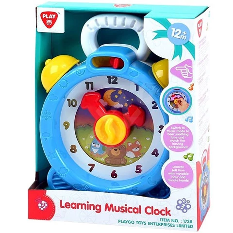 Egy különleges játékot szerezhetsz be gyermekednek, mely biztosan tetszeni fog majd neki ,hiszen színes kivitelezést kapott. Az óra kiváló minőségű anyagokból készült, aminek köszönhetően rendkívül strapabíró, így sokáig lehet majd gyermekednél használatban. A középső sárga tekerős fogantyút elforgatva, az óra mutatói forogni kezdenek és vidám dallamokat kezd el játszani, mely mókás hangulatot teremt, gyermeked pedig örömmel kezd majd játszani, miközben sokat fejlődhet.